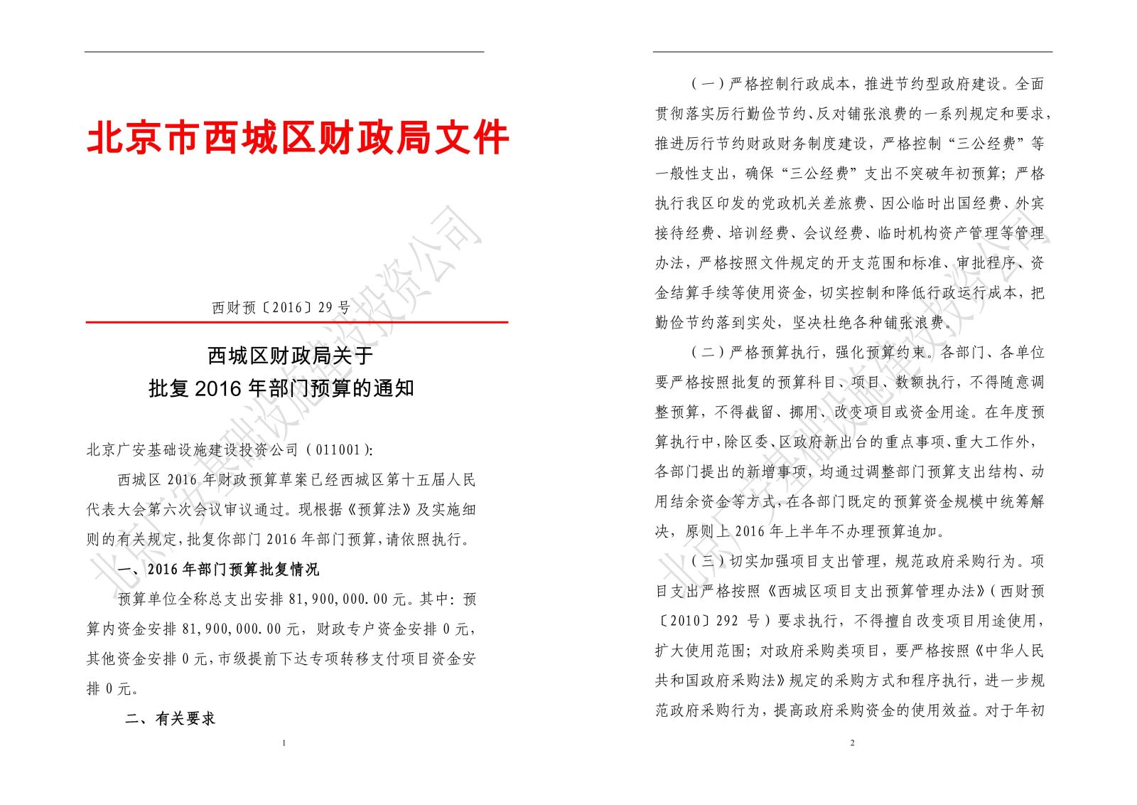 附件:區(qū)財政局關于2016北京廣安基礎設施建設投資公司預算的批復.pdf